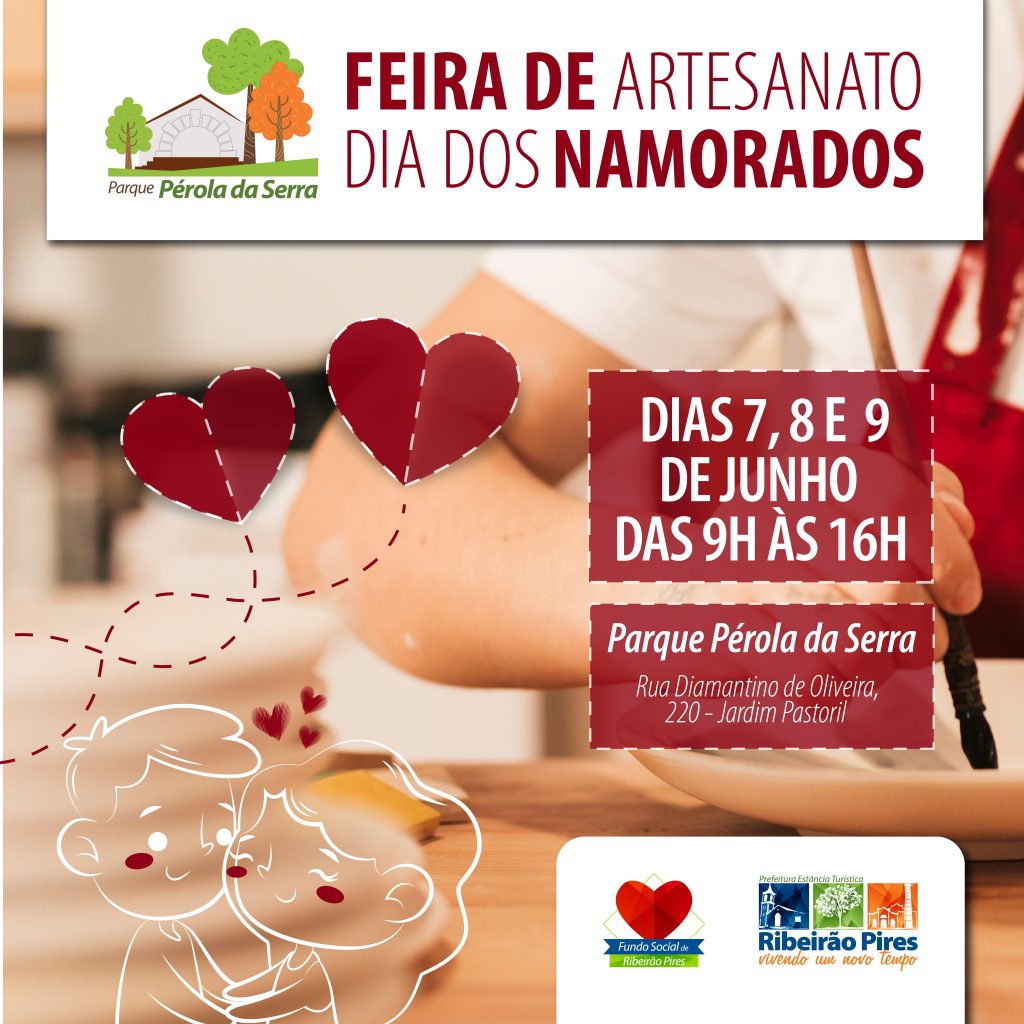 O Fundo Social de Ribeirão realizará nos dias 7, 8 e 9 de junho, das 9h às 16h,  a Feira de Artesanato especial do Dia dos Namorados. A ação acontece no Parque Pérola da Serra, localizado na Rua Diamantino de Oliveira, 220, Jardim Pastoril. A entrada do evento é gratuita.