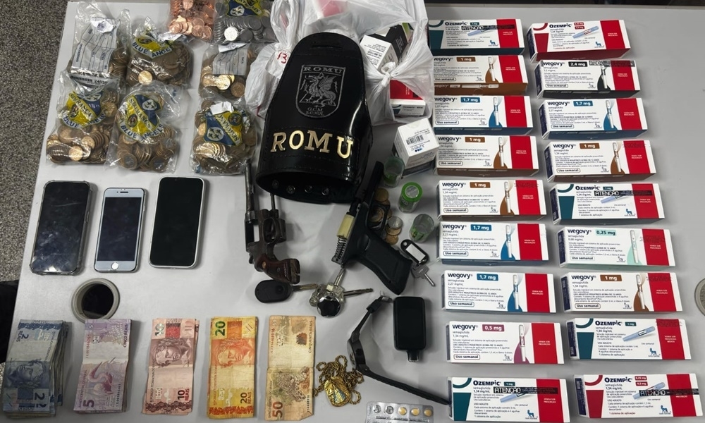 Os GCMs encontraram um revólver calibre 32, uma arma de fogo parecida com uma pistola, telefones celulares, uma quantia em dinheiro e uma vasta quantidade de medicamentos durante a busca veicular. O carro tinha registro de furto e usava placas de outro carro, sem registro de delito, com a finalidade de driblar o sistema de vigilância por vídeo.