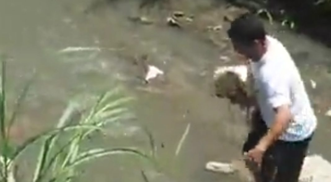 Alessandro Martins resgata cachorro caído em córrego na cidade de Mauá