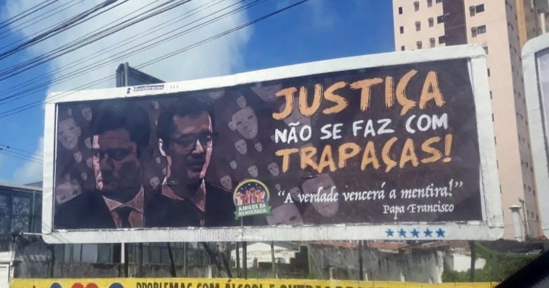 Um grupo denominado AMIGOS DA DEMOCRACIA espalharam outdoors pela capital da Paraíba, João Pessoa, protestando contra o ministro da Justiça, Sergio Moro e o procurador Federal, Deltan Dallagnol.