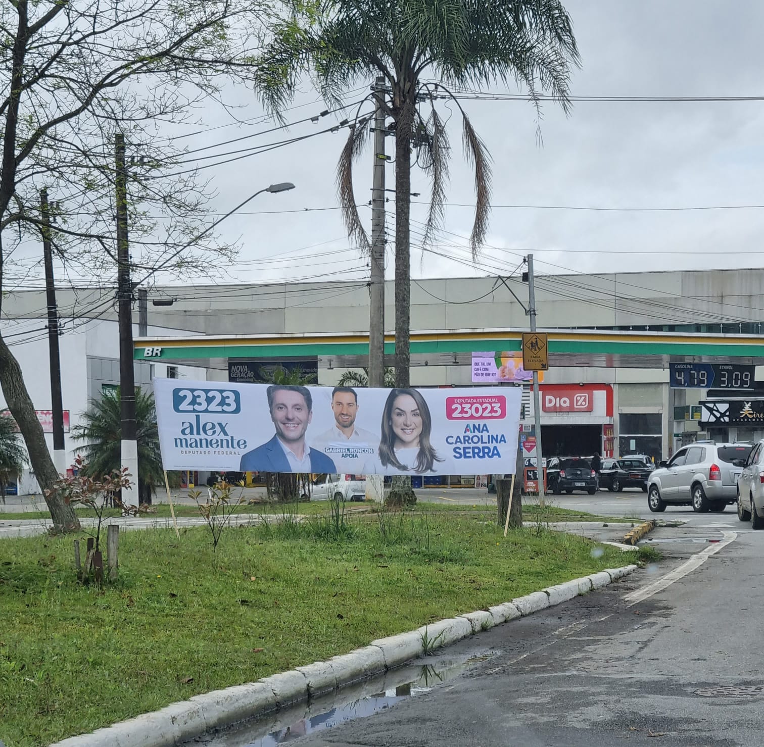 Nesta sexta-feira (29/9), a cidade de Ribeirão Pires amanheceu coberta de faixas em locais públicos dos candidatos Alex Manente e Ana Carolina Serra, o que é crime previsto na Lei Cidade Limpa 5509/11.
