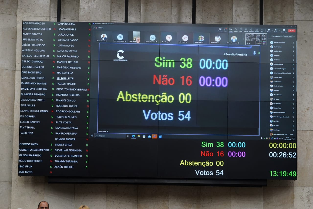 A Câmara Municipal de São Paulo aprovou em segundo turno de discussão, na Sessão Plenária desta sexta-feira (20/12), o substitutivo do governo ao PL (Projeto de Lei) 799/2024. A matéria promove um ajuste na lei do PDE (Plano Diretor Estratégico) para ampliar a Central de Tratamento Leste, na zona leste, e a construção de um Ecoparque. Os equipamentos farão a gestão do lixo da capital. O texto passou com 38 votos favoráveis e 16 contrários.
