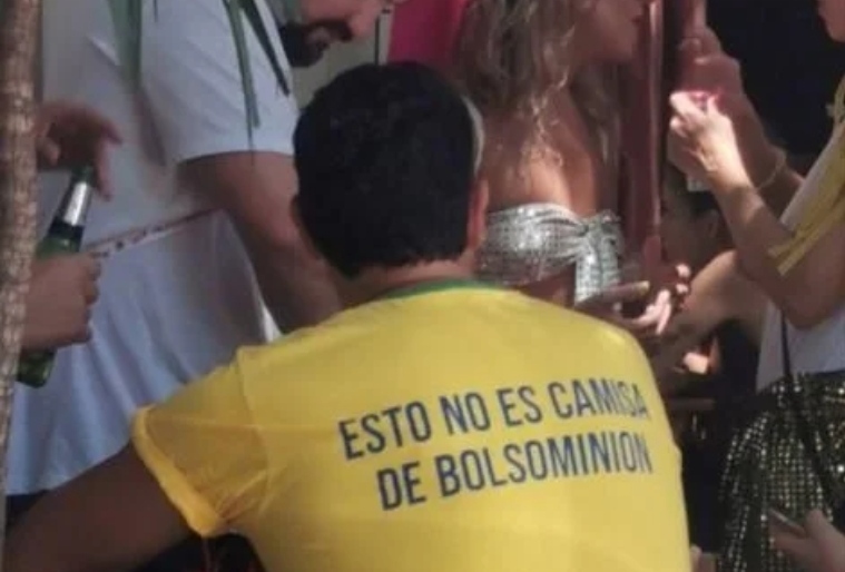 Uma foto chamou a atenção na semana do pré-carnaval Paulistano, turistas Argentinos vestindo a camiseta da Seleção Brasileira de Futebol com os dizeres, “esto no es camisa de bolsominion”.