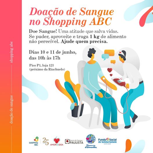 Nos dias 10 e 11 de junho, o Shopping ABC será palco de uma campanha para doação de sangue e arrecadação de alimentos. A prefeitura de Santo André divulgou nas redes sociais com a seguinte frase: R...
