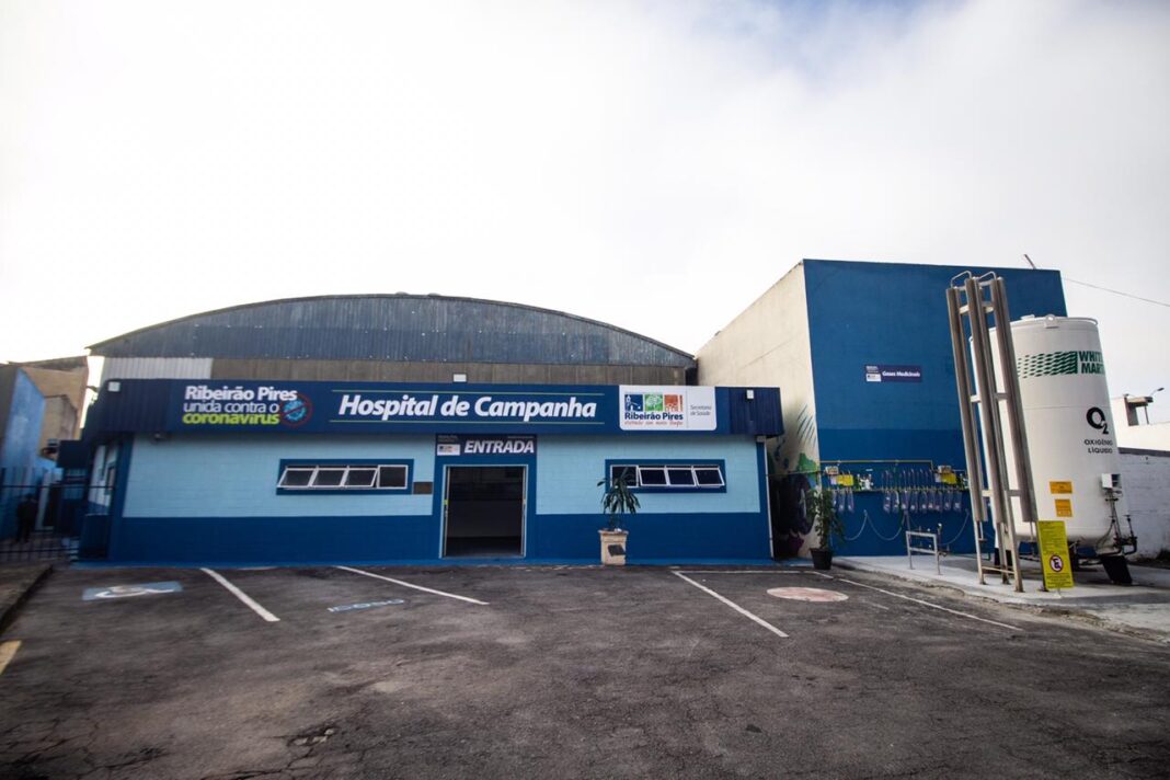 Dos 27 pacientes internados hoje no Hospital de Campanha de RibeirĂŁo Pires, 12 sĂŁo provenientes de cidades vizinhas, como Mauá, Rio Grande da Serra e Suzano, e 15 sĂŁo moradores do prĂłprio municĂpio. D...