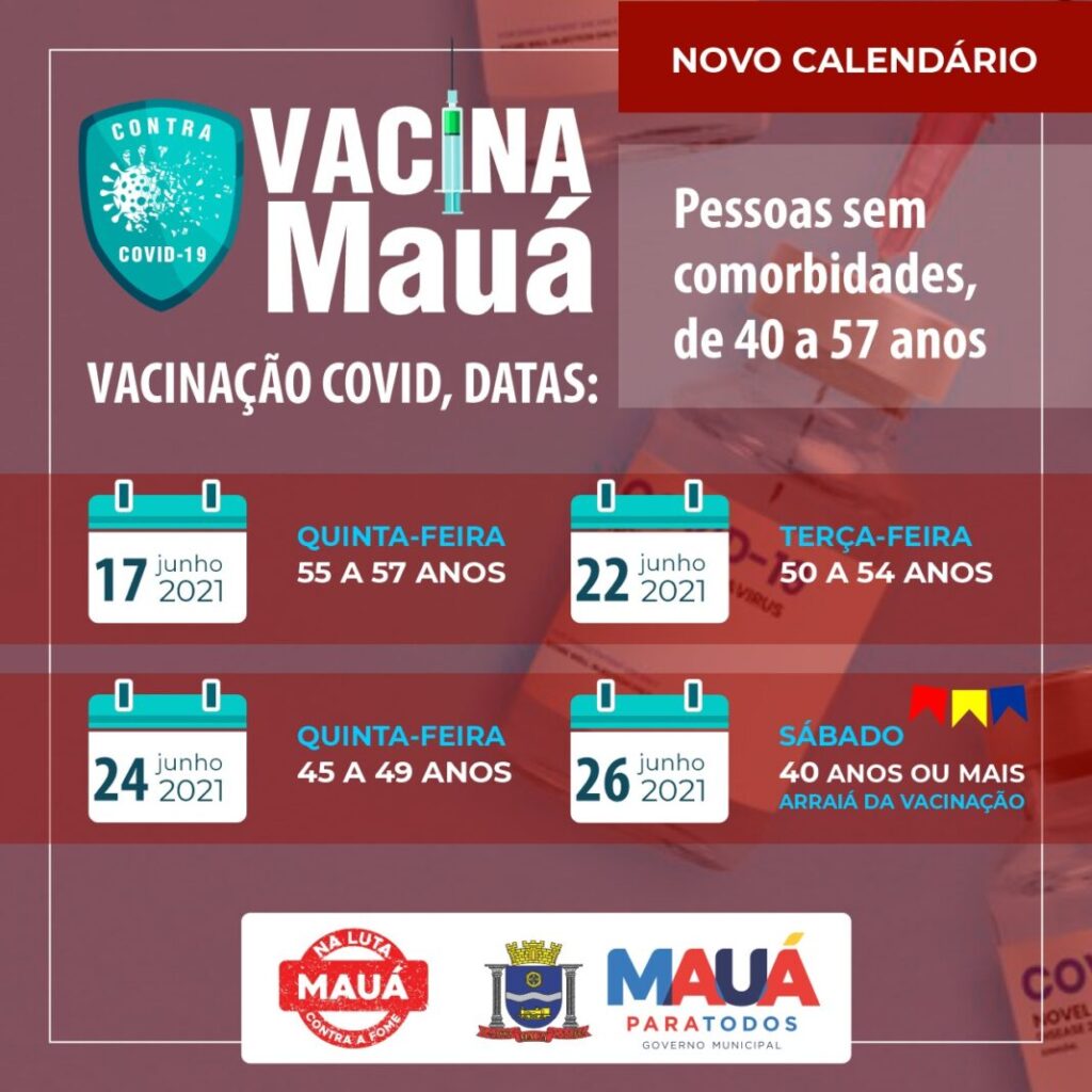 Mauá iniciará grande etapa da campanha de vacinação municipal contra o coronavírus. Até o dia 26 de junho, a cidade projeta vacinar 106 mil pessoas com idade entre 40 e 57 anos. A primeira faixa etári...