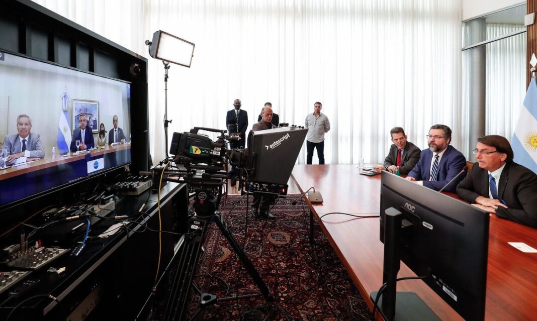 O presidente Jair Bolsonaro e o presidente da Argentina, Alberto Fernández, tiveram na manhã de hoje (30), por videoconferência, o primeiro encontro bilateral desde a eleição do argentino, em outubro do ano passado.