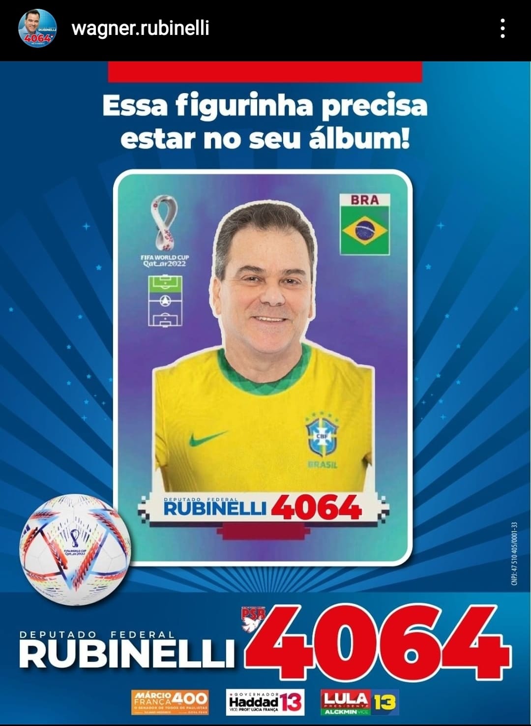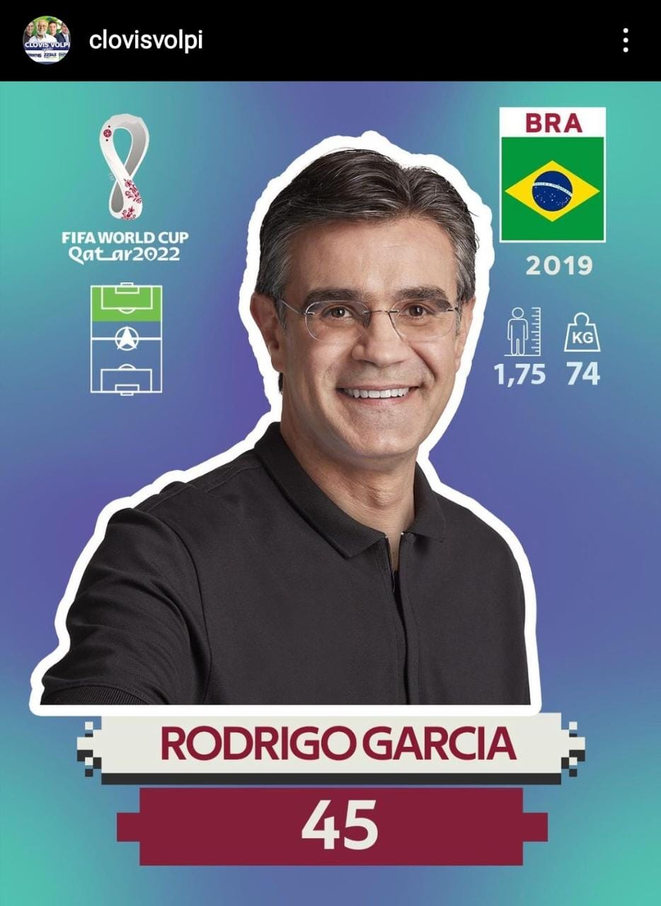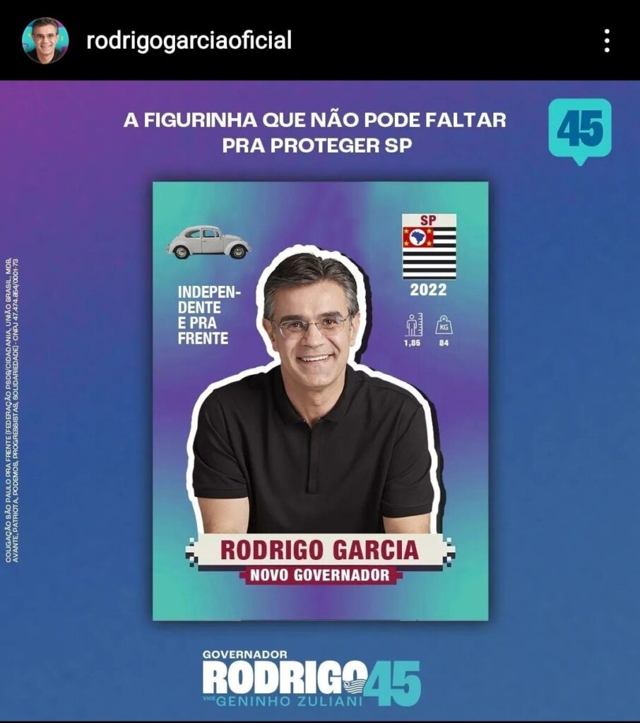 Aproveitando a febre das figurinhas da Copa diversos candidatos colocaram a suas “figurinhas” próprias em suas redes sociais, foi o caso do governador de São Paulo e candidato a reeleição Rodrigo Garcia (PSDB).