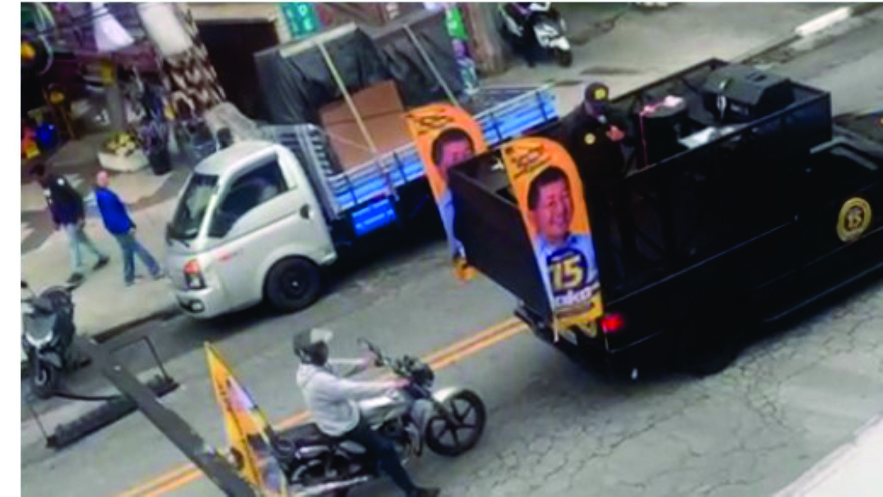 Na tarde desta quinta-feira (19/9), um caminhão de som da campanha do candidato a prefeito, Taka Yamauchi (MDB), parou em frente ao comércio do candidato a prefeito pelo Podemos, Márcio da Farmácia pa...