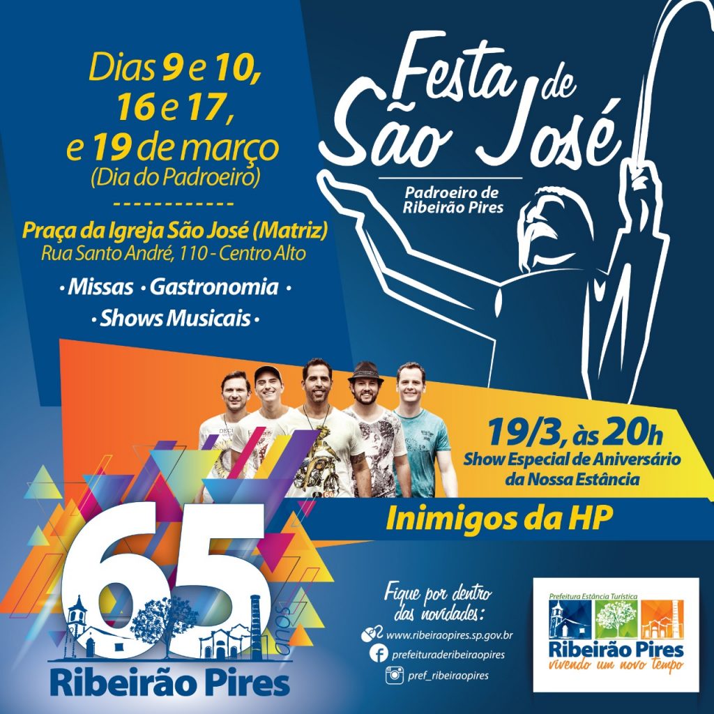 A tradicional celebração ao Padroeiro do município acontece na Igreja Matriz, nos dias 9, 10, 16, 17 e 19 de março – dia que a Estância comemora 65 anos No próximo sábado, dia 9, terá início a tradici...