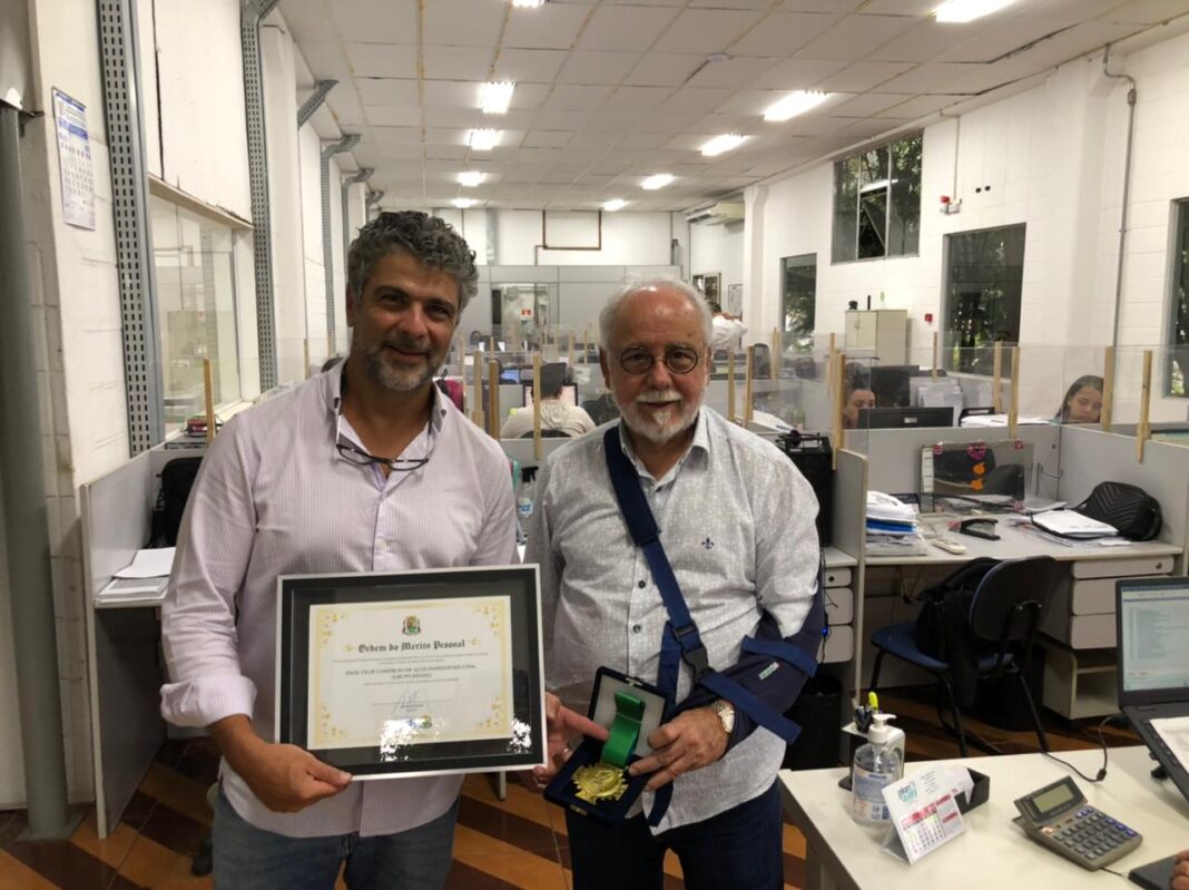 Prefeito de Ribeirão Pires está levando pessoalmente medalhas e certificados de homenagens O prefeito de Ribeirão Pires, Clovis Volpi, esteve nesta terça-feira, dia 5, no Grupo Feital, localizado na V...