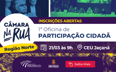 No próximo sábado (21/3), às 9h, a Escola do Parlamento da Câmara Municipal de São Paulo promove Oficinas de Preparação para Participação Qualificada do projeto Câmara na Rua. O objetivo da atividade ...