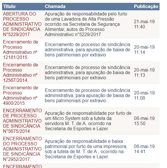 De acordo com o Diário Oficial do Município, nenhuma sindicância foi aberta para apurar os fatos.