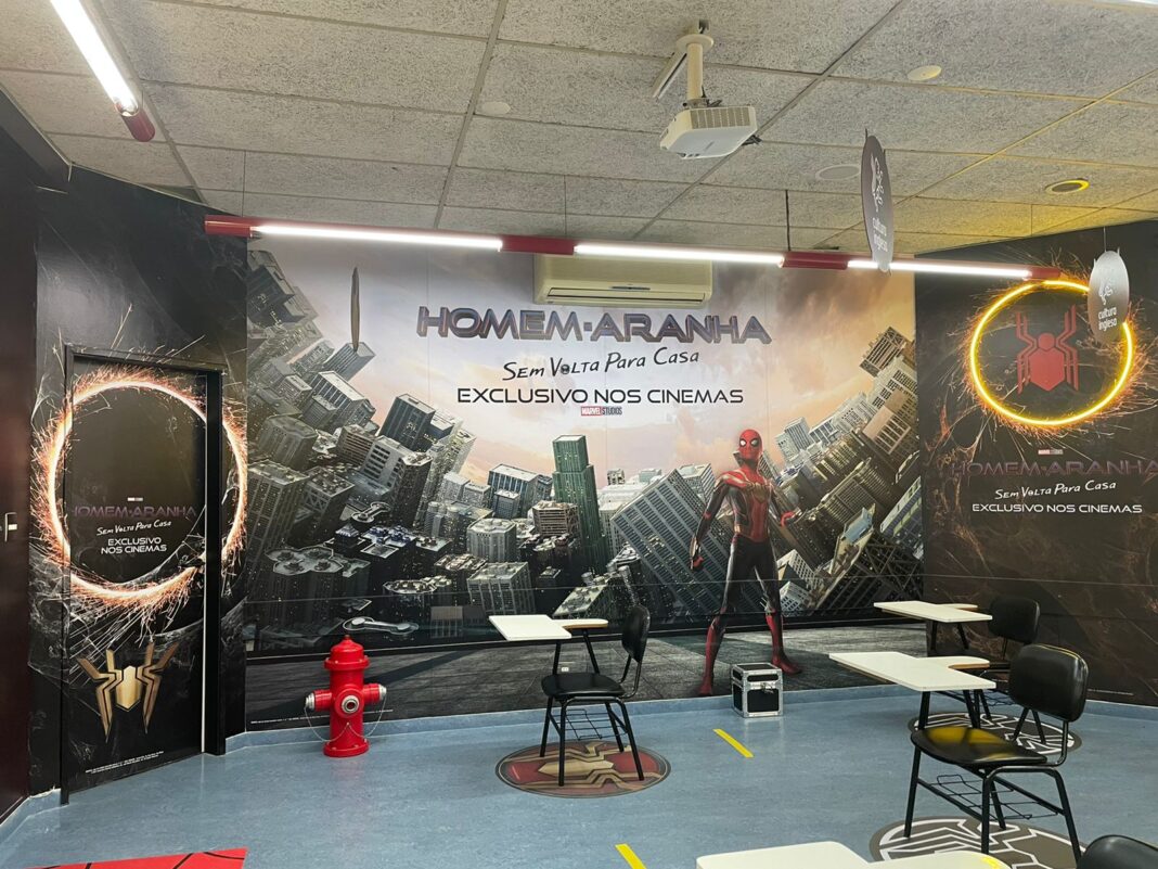 Pela ação, o super-herói vai ambientar as unidades da Cultura Inglesa com paredes instagramáveis em São Paulo, Bahia e Santa Catarina. Para proporcionar uma experiência imersiva no universo do aracnídeo, também lançará, em sua unidade Vila Mariana, uma sala temática com um escape room inspirados em cenas do novo filme do Homem-Aranha, que serão abertas gratuitamente para visita do público mediante reserva antecipada. Com o objetivo de estimular o uso do inglês, a mecânica é 100% em inglês, com o apoio dos alunos da Faculdade Cultura Inglesa.