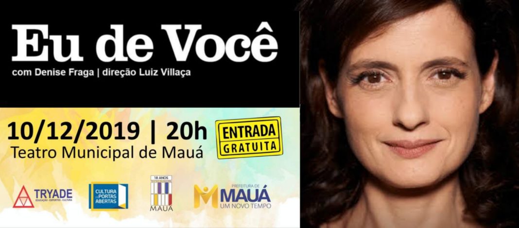 O Teatro Municipal de Mauá completa 18 anos nesta terça-feira (10), para comemorar a data, será exibida a peça “Eu de Você”, com a interpretação da atriz Denise Fraga e direção de Luiz Villaça. O espetáculo será às 20h com entrada gratuita e faz parte do Expresso Cultural, que busca a inclusão de toda a sociedade nas mais diversas manifestações artísticas! Para garantir a sua entrada, você pode comparecer uma hora antes da apresentação ou ligar para (11) 4512-7480 para fazer a reserva.