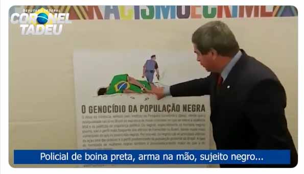 O deputado Coronel Tadeu (PSL) atacou nesta terça-feira uma exposição na Câmara dos Deputados sobre o Mês da Consciência Negra.