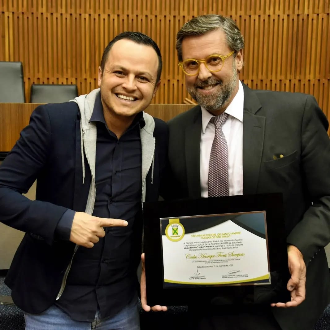 Nesta última sexta-feira (6), Prof. Jobert Minhoca (Podemos), entregou o Título de Cidadão Andreense ao deputado federal Carlos Sampaio (PSDB).