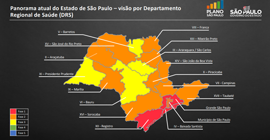 A partir de 1º de junho, índices de ocupação hospitalar e de evolução de casos em 17 regiões do Estado vão definir cinco níveis restritivos de retomada produtiva, segundo critérios médicos e epidemiológicos, para que o sistema de saúde continue em pleno funcionamento.