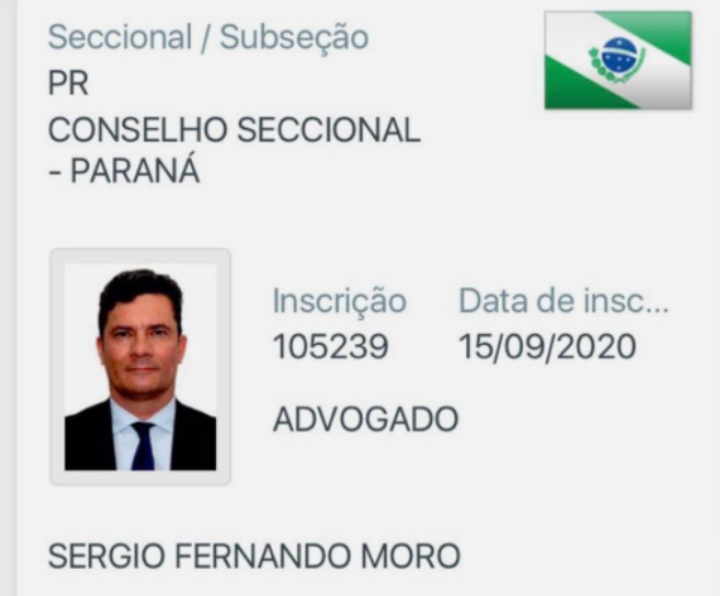 O ex-juiz e ex-ministro da Justiça e da Segurança Pública Sergio Moro conseguiu sua inscrição na OAB do Paraná e, com isso, já pode ser chamado de advogado. Moro está inscrito na seccional paranaense da Ordem com o número 105.239.