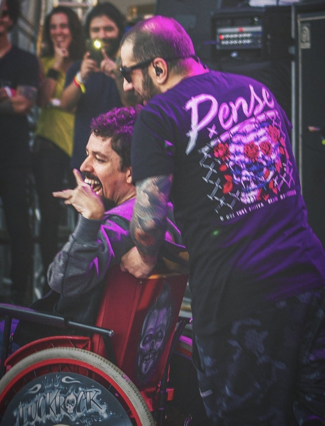 No último dia 17, em show realizado no Parque da Juventude, Zona Norte de São Paulo, o rapaz foi convidado pelos músicos para assitir ao show direto do palco.