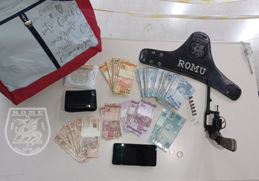 De imediato os guardas constataram a ocorrência de um assalto, cercaram o estabelecimento e realizaram a prisão do homem, que já era egresso do sistema penitenciário. Com ele foi encontrado um revólver calibre 38, R$ 1.832 em dinheiro, um celular, duas alianças e uma carteira. Outro criminoso conseguiu fugir de moto do local.