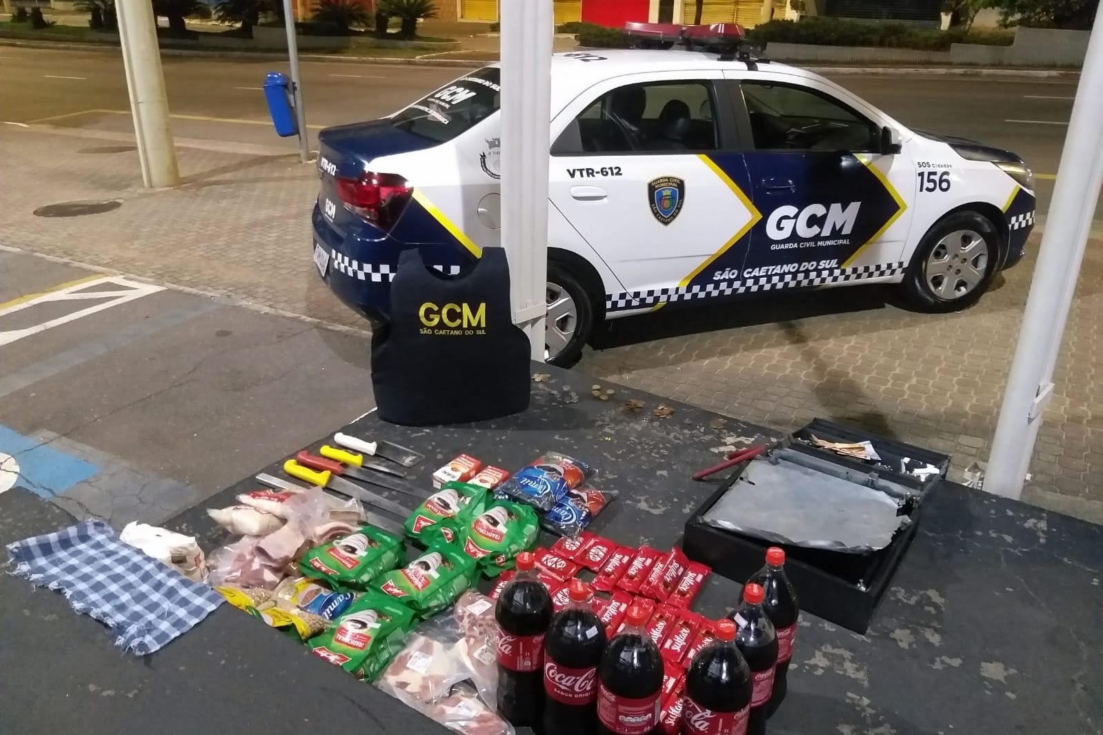 Após ser avisada por um motorista de que havia uma movimentação estranha no estabelecimento (furtado), por volta da 0h40, as viaturas da GCM seguiram de posse das informações transmitidas pela Cecom (Central de Comunicações) constatou-se que o estabelecimento havia sido arrombado em sua porta principal, a GCM passou a procurar a dupla pelas imediações do comércio, até encontrá-la, e dar voz de prisão a ambos, que foi ratificado na Delegacia Sede.