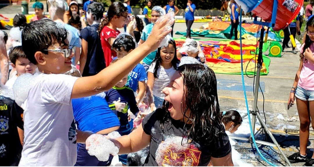 No último sábado (12), o clube esteve com atividades especiais, a atração que mais chamou a atenção das crianças foi a chuva de espuma.