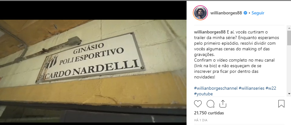 O jogador ribeirão-pirense, Willian Borges, meia do time do Chelsea da Inglaterra, postou em suas redes sociais o trailer de uma série sobre sua vida, “Willian: Sonhos e Glórias”. Nas cenas do Making Of, a imagem do ginásio poliesportivo, Ricardo Nardelli do Ribeirão Pires Futebol Clube aparece como parte do documentário.