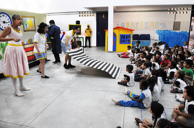Neste mês, a peça ‘O misterioso sumiço da faixa de pedestre’ está sendo apresentada aos alunos de 12 EMEBs. Com muita música e interação com os alunos, os personagens da Cia Sopa de Comédia mostram que hábitos como usar o cinto de segurança e os cuidados para atravessar a faixa de pedestres são fundamentais.