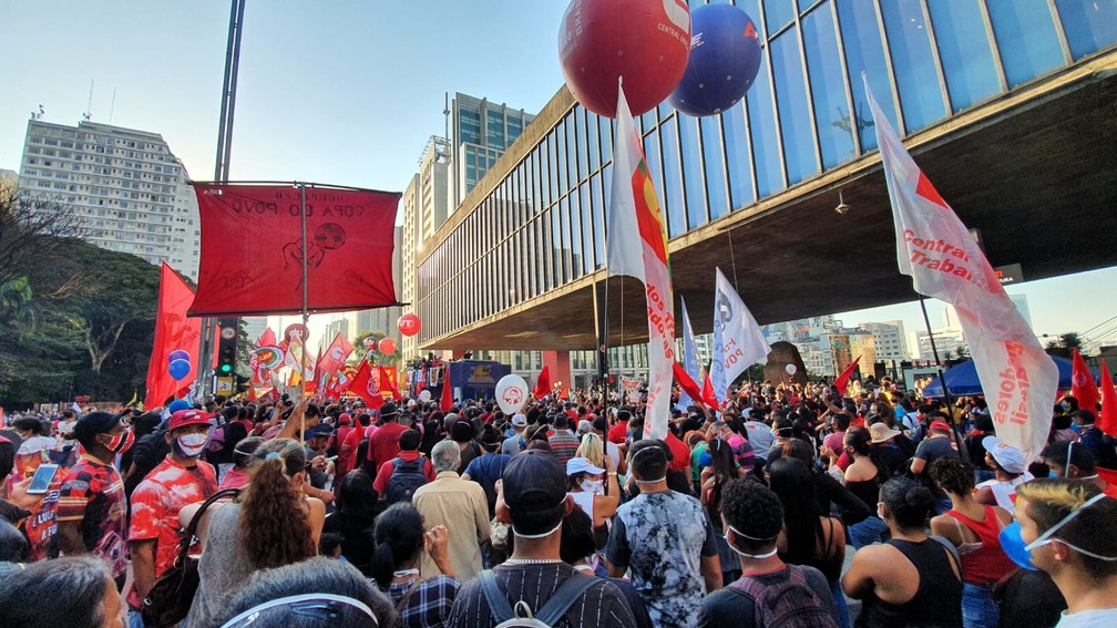 Manifestantes realizaram neste sábado (24) um ato contra o governo Jair Bolsonaro (sem partido) na Avenida Paulista, região central da cidade de São Paulo.