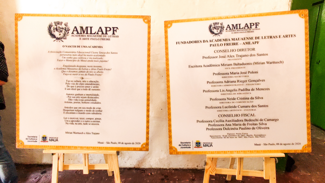 Ocorreu neste sábado (8) o ato de fundação da Academia Mauaense de Letras e Artes Paulo Freire (AMLAPF), no Museu Barão de Mauá, a Academia contará com 40 cadeiras dedicadas aos escritores e aos artistas da cidade de Mauá.