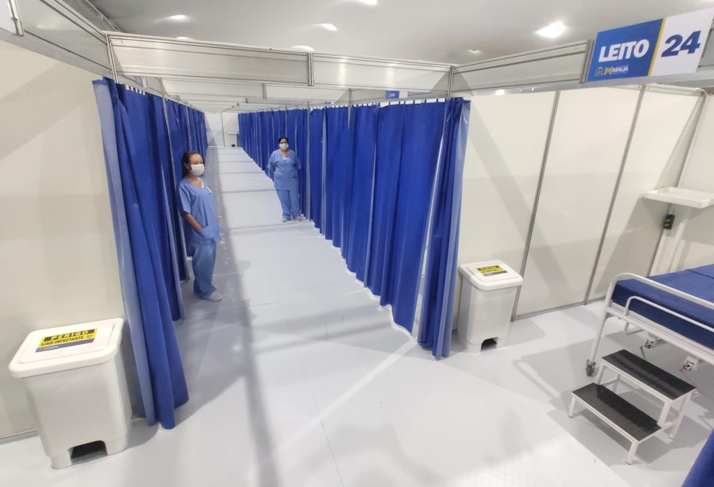 Construído em 25 dias, o hospital conta com 24 leitos de observação e transferência, 4 de UTI (Unidade de Terapia Intensiva), 2 para atendimentos pediátricos, laboratório, sala de coleta de exames laboratoriais e farmácia.