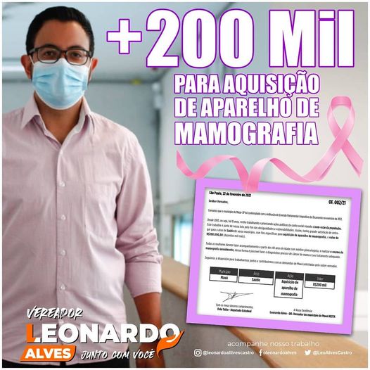 Nesta última terça-feira (13), o vereador Leonardo Alves publicou em suas redes sociais uma grande conquista “Uma das principais reivindicações na área de saúde da mulher na nossa cidade, sempre foi a questão de falta de aparelhos específicos para realizar exames.