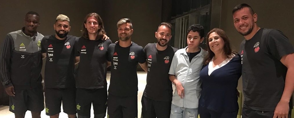 Nickollas, torcedor símbolo do Palmeiras, que ficou conhecido pela emocionante história de vida contada pelo Globo Esporte, visitou os jogadores do Flamengo em Lima, no Peru. Acompanhado da mãe Silvia, o garoto recebeu o carinho da delegação Flamenguista no hotel e foi presenteado com camisas especiais da decisão da Libertadores.