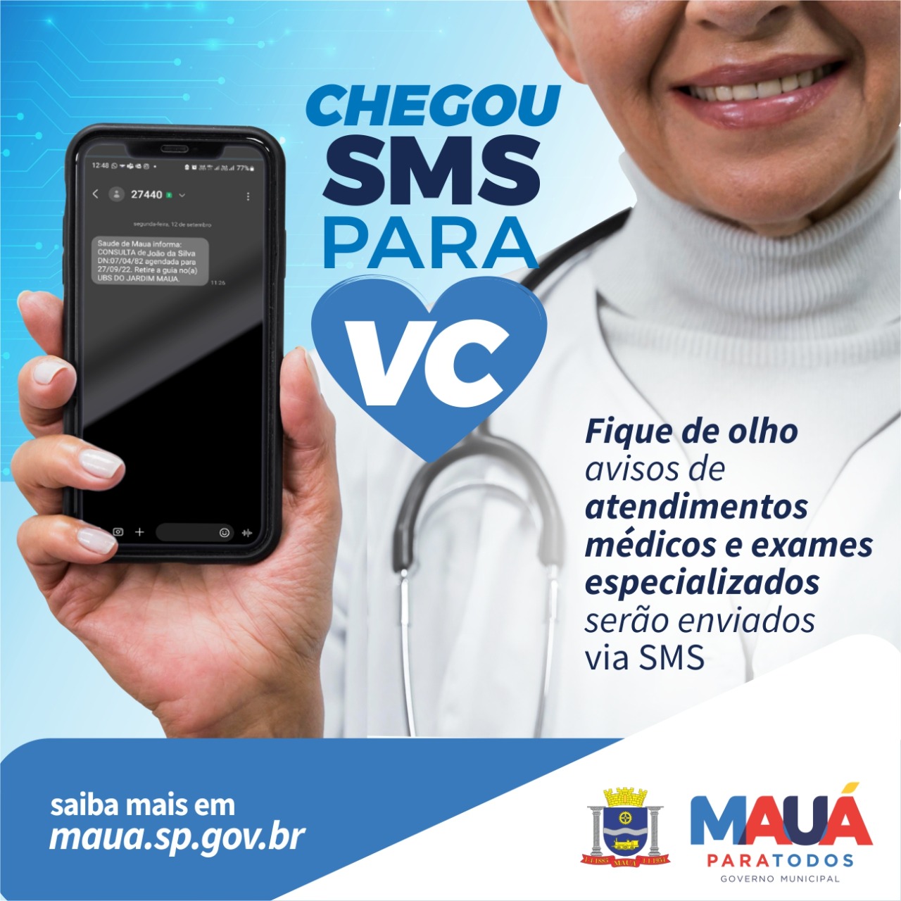 A Prefeitura de Mauá segue levando modernidade e humanização na área da saúde do município. Entrou em operação, em fase experimental, novo serviço aos usuários do sistema público municipal. Trata-se de mensagem no celular, via SMS, das datas de consulta ou de exame especializado agendado na rede. A guia pode ser retirada na unidade de saúde. Para os procedimentos básicos marcados diretamente nas UBSs (Unidades Básicas de Saúde), não existe a necessidade de informe, pois já saem com a data e hora em mãos. Esse é mais um passo da informatização da saúde pública de Mauá.