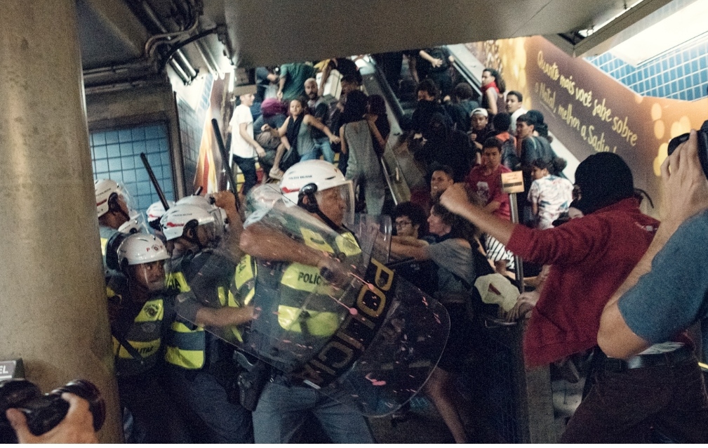 Policiais militares do estado de São Paulo, comandados pelo governador João Doria (PSDB) e pelo secretário da Segurança Pública, coronel João Camilo Pires de Campos, detiveram ilegalmente um grupo de ao menos 20 pessoas durante protesto contra o aumento no valor das passagens do transporte público na noite desta terça-feira (7), na cidade de São Paulo. Entre as pessoas “presas para averiguação”, nas palavras de um PM, está o repórter fotográfico Rodrigo Zaim. A PM ainda agrediu manifestantes e jornalistas durante o ato.