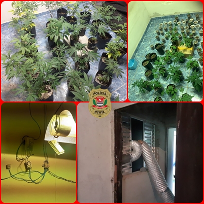 Na residência dos investigados foram encontrados 123 pés de maconha, em estágios diversos de crescimento, que lá estavam sendo cultivados, além de um engenhoso sistema de ventilação.