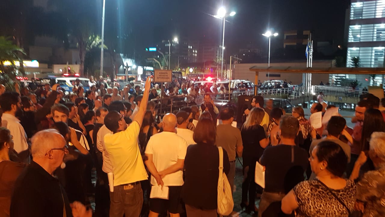 Alguns munícipes reclamaram que a GCM utilizou spray de pimenta para dispersar a população e impedir que alguns manifestantes entrassem para acompanhar a sessão. Os manifestantes chamaram a polícia militar, e realizou o protesto contra os vereadores do lado de fora da Casa.