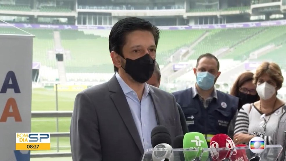 Nunes participou nesta segunda (17) da primeira agenda oficial dele como prefeito empossado da capital paulista, após a morte e sepultamento de Bruno Covas neste domingo (16). Ele acompanhou a retomada da vacinação para gestantes e puérperas com comorbidades na cidade de São Paulo, em um posto de imunização instalado no estádio Allianz Park, na Zona Oeste da capital.
