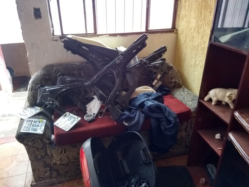 No interior encontraram a motocicleta da vítima e mais duas em fase de desmonte, além de indícios de mais sete já desmontadas.