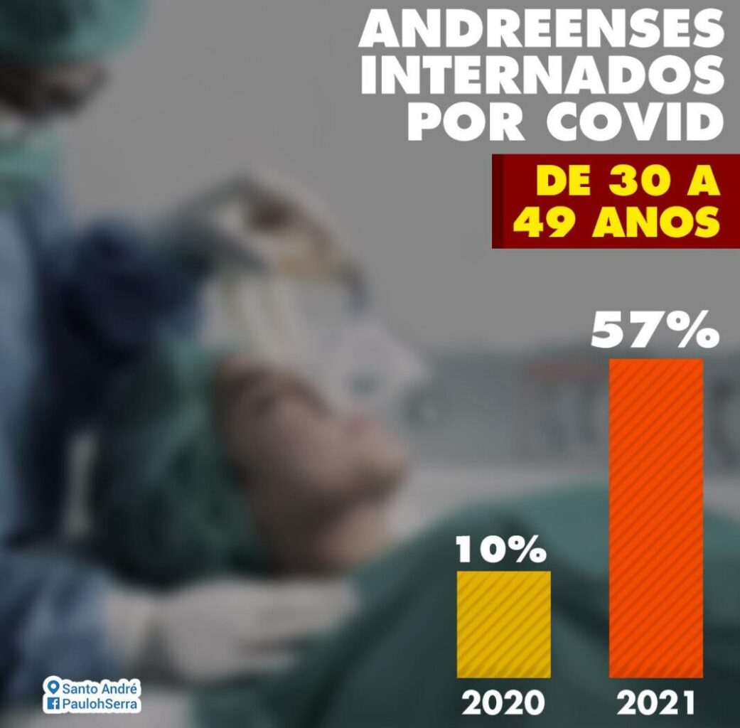 Os pacientes entre 30 e 49 anos de idade são maioria nos hospitais de Santo André. Até ano passado, eram 10% dos internados. Agora, são 57% do total em estado grave.