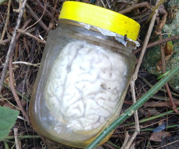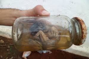 Após verificação pelas imediações foram achados diversos frascos contendo os órgãos humanos, além de outros fetos. Ao todo, foram 22 frascos localizados.
