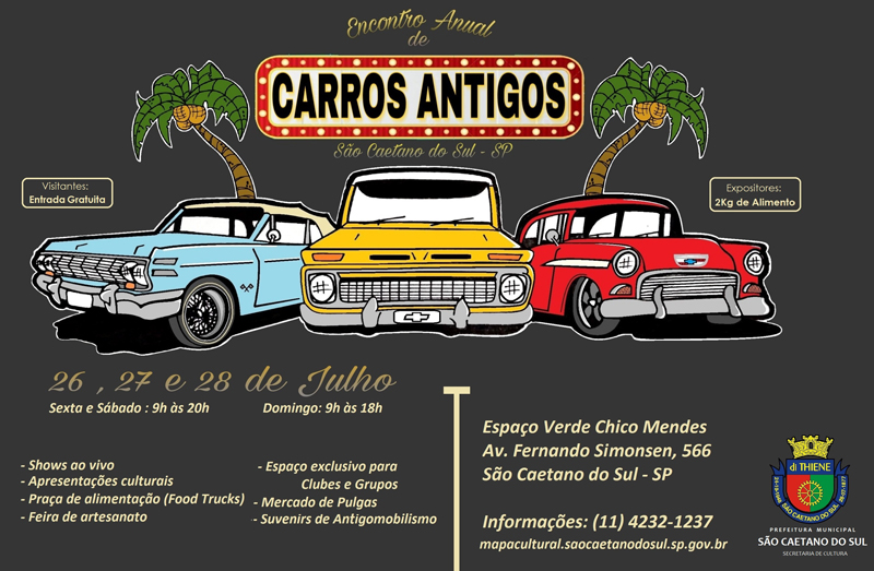 Também está aberto o edital para Hot Rods, Musclecars, Customcars, Mercado de Pulgas/Entretenimento, Stands Promocionais, Comercialização de Veículos Antigos, itens de Memorabília, Antiguidades e Praça de Alimentação que visa fomentar a paixão pelos colecionadores e apreciadores de carros antigos na cidade de São Caetano do Sul.