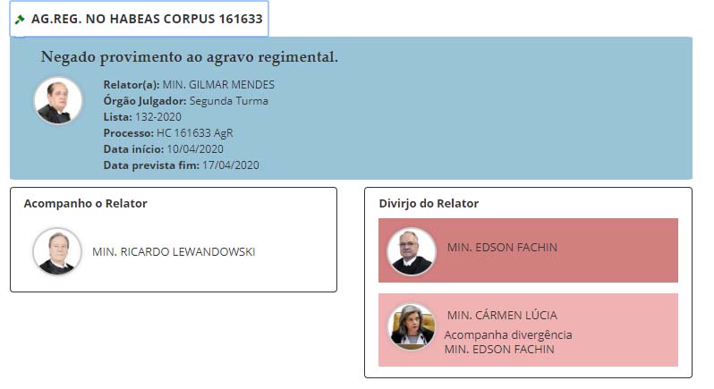 O prefeito conquistou parecer favorável de Gilmar Mendes, relator da ação, Ricardo Lewandowsky . Votaram contrário ao prefeito os ministros Edosn Fachin e Carmén Lúcia.