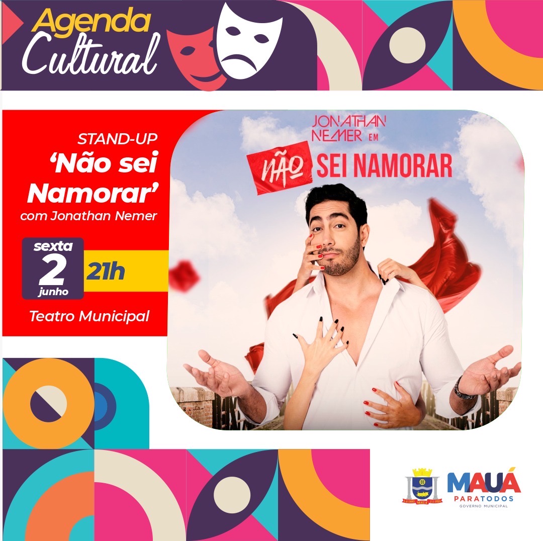 No mês dos namorados, o Teatro Municipal de Mauá recebe o novo stand-up do comediante Jonathan Nemer. Em “Não Sei Namorar”, o artista diverte o público com suas tragédias amorosas. O show será apresentado nesta sexta-feira (02/06), às 21h.