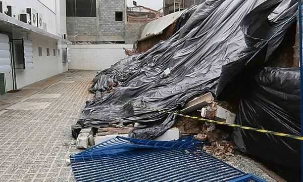 Um muro lateral que separa o estacionamento do centro de saúde, localizado na Avenida Humberto de Alencar Castelo Branco, altura do número 2.500, da Arena Parque de Esportes Alves Dias, desabou recentemente.