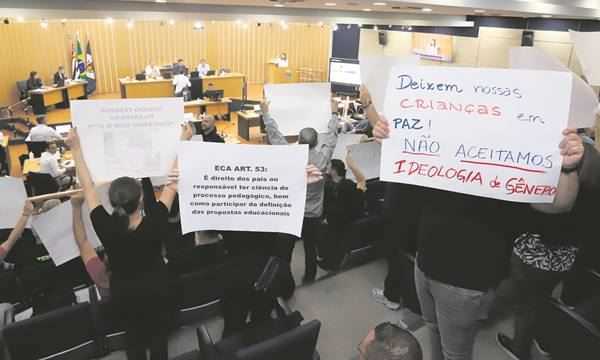 Durante a sessão desta terça-feira (29), manifestantes favoráveis e contrários à palestra sobre diversidade sexual realizada na sexta-feira na EME Alcina Dantas Feijão, que abordou orientações sobre transexualidade, ocuparam a galeria da Câmara de São Caetano. A extensão do prazo para a revisão do PME (Plano Municipal de Educação) foi aprovada por unanimidade.