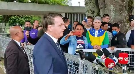 Na manhã desta segunda-feira (20/4), o presidente da República, Jair Bolsonaro (sem partido), ao conversar com jornalistas na frente do Alvorada, exortou um apoiador que pedia o fechamento do STF.